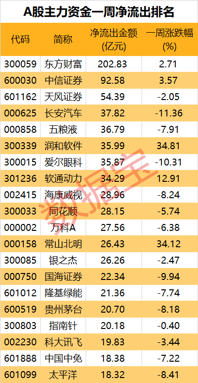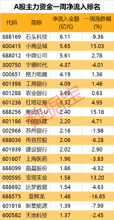 本周主力资金动向出炉。
