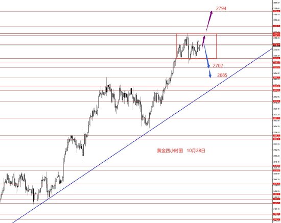 黄金前期走势正如预期,大幅拉涨到达2737附近。从图形来看,上周黄金涨到位后在高位震荡整理,后市涨跌概率对半,目前不好判断,先关注2760-2717区间行情,再看如何破位吧。大级别还是处于上涨当中的高位震荡,主趋势仍偏多头,即使向下破位,也还是针对前一波上涨的修整,下方2702和2685强支撑还要重点关注。今日只有框架思路,没有具体操作建议。