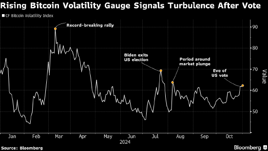 比特币投机者准备迎接美国周二选举日结束后可能出现的大幅波动。