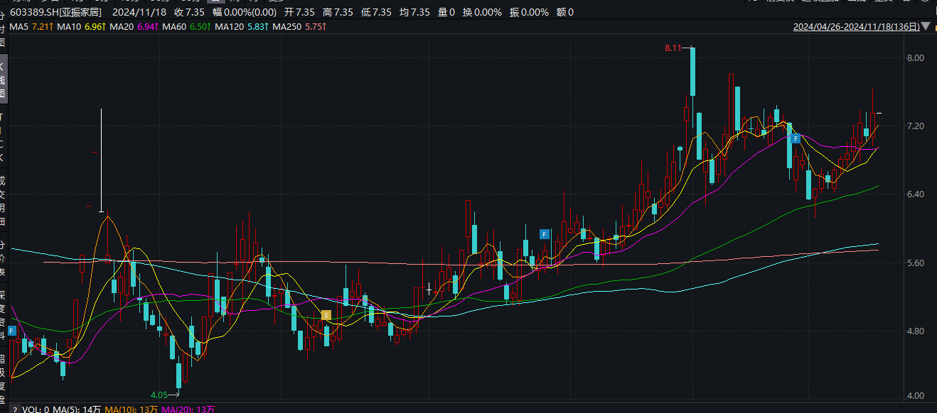 此次停牌前,亚振家居股价已连续多日上涨,疑似出现内幕信息泄露。11月7日至11月15日,该股在连续7个交易日中的6日实现股价上涨。截至11月15日收盘,亚振家具报7.35元/股,盘中最大涨幅为8.07%。