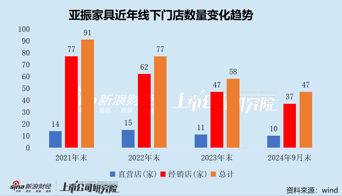 此外,亚振家具还深陷大规模裁员关店潮。2020年—2023年,亚振家具员工总数分别为1226、1192、1090和921,呈逐年下降趋势。截至今年9月,亚振家具共有线下门店47家,其中直营门店10家,较年初减少1家;经销门店37家,较年初减少10家。