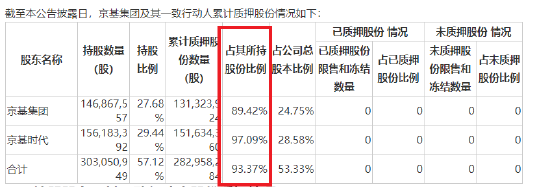 不过,京基集团资金来源成谜。截至质押公告最新披露日,京基集团及其一致行动人京基时代累计质押股份数量282,958,284股,占其所持上市公司股份的93.37%,近乎满仓质押;累计质押股份占上市公司总股份53.33%,超过五成。