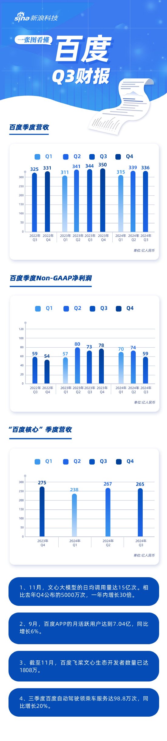 看图:百度第三季度营收336亿元 文心大模型日调用量达15亿次