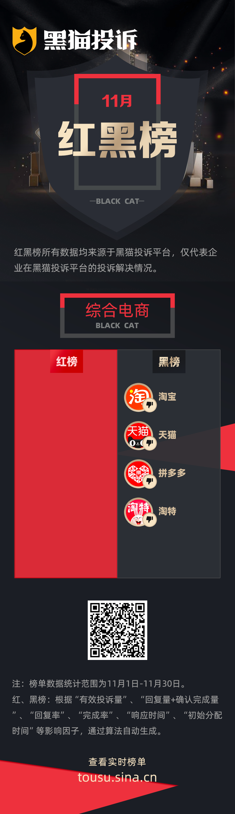 黑猫投诉11月行业红黑榜单