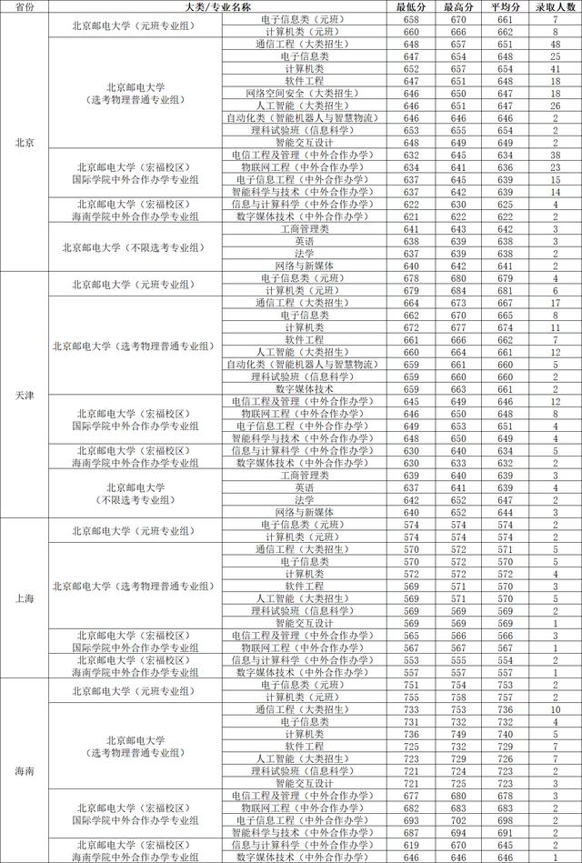 2023年北京邮电大学录取分数线汇总,各省元班分数线较高