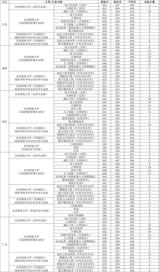 各省各专业录取分数线 来自北京邮电大学官网的资料,本文仅供参考,如有侵权,请联系删除!