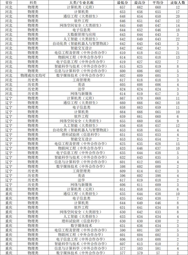 二、2023年北京邮电大学 1 2高考省各专业录取分数线
