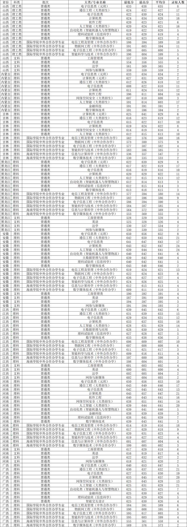 四、2023年北京邮电大学国家专项各省各专业录取分数线