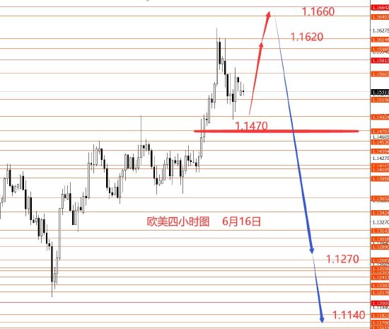 6月16日,上周美指实际走势跌破98.30,上周分析错误。从图形来看,美指继续下跌并创新低,本周上方重点关注98.80区域强阻力,以下还是偏空头,但也要留意转向行情的出现,因为节奏分析,97.30没跌破前,波段仍然偏向于看涨,故本周操作思路:谨慎做空或观望不操作。周初先关注98.60和98.80一线强阻力。框架思路仅供参考,风险自负。