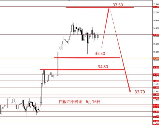 白银上周继续高位震荡,没涨也没跌。从图形来看,白银仍在高位震荡,整体趋势偏多头,下方关注34.80强支撑,上方关注37.50强阻力,本周建议按高位震荡偏多头操作,但也要留意创新高后的反转行情出现。