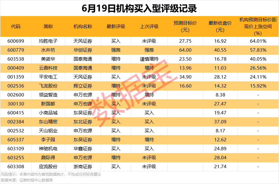从机构评级变动看,今日机构买入型评级记录中,共有6条评级记录中对相关个股给出了预测目标价。以公布的预测目标价与最新收盘价进行对比显示,共有5股上涨空间超20%。
