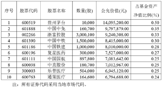 报告期末按公允价值占基金资产净值比例大小排序的前十名股票投资明细