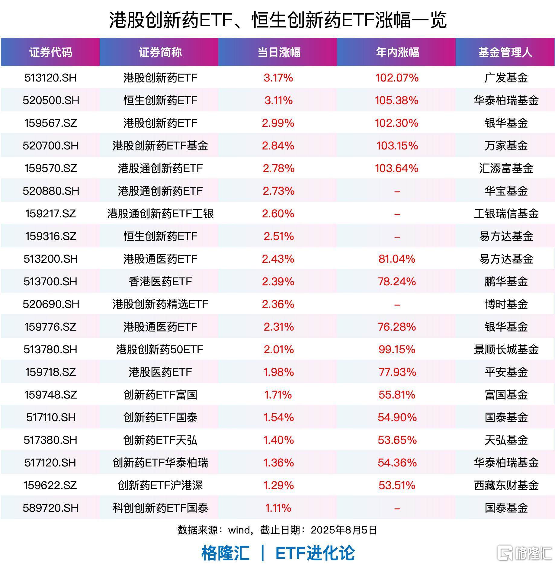 ETF方面,港股创新药ETF、恒生创新药ETF涨超3%;港股创新药ETF基金、港股通创新药ETF、港股通创新药ETF工银、恒生创新药ETF、港股通医药ETF、香港医药ETF、港股创新药精选ETF、港股通医药ETF、港股创新药50ETF涨超2%。