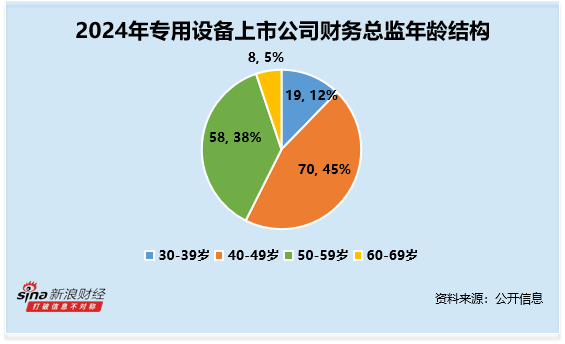 从年龄结构来看,财务总监CFO的年龄平均数约为47.95岁,其中40-49岁最多,人数共70人,占比约45%。其中,年龄最大的为昌红科技周国铨,年龄为65岁,大专学历,2024年薪酬为51.83万元;年龄最小的为丰安股份吴怀源,年龄为33岁,2024年薪酬为23.04万元。