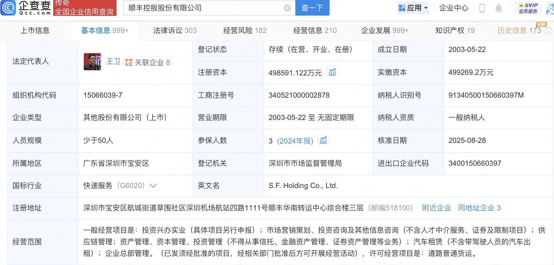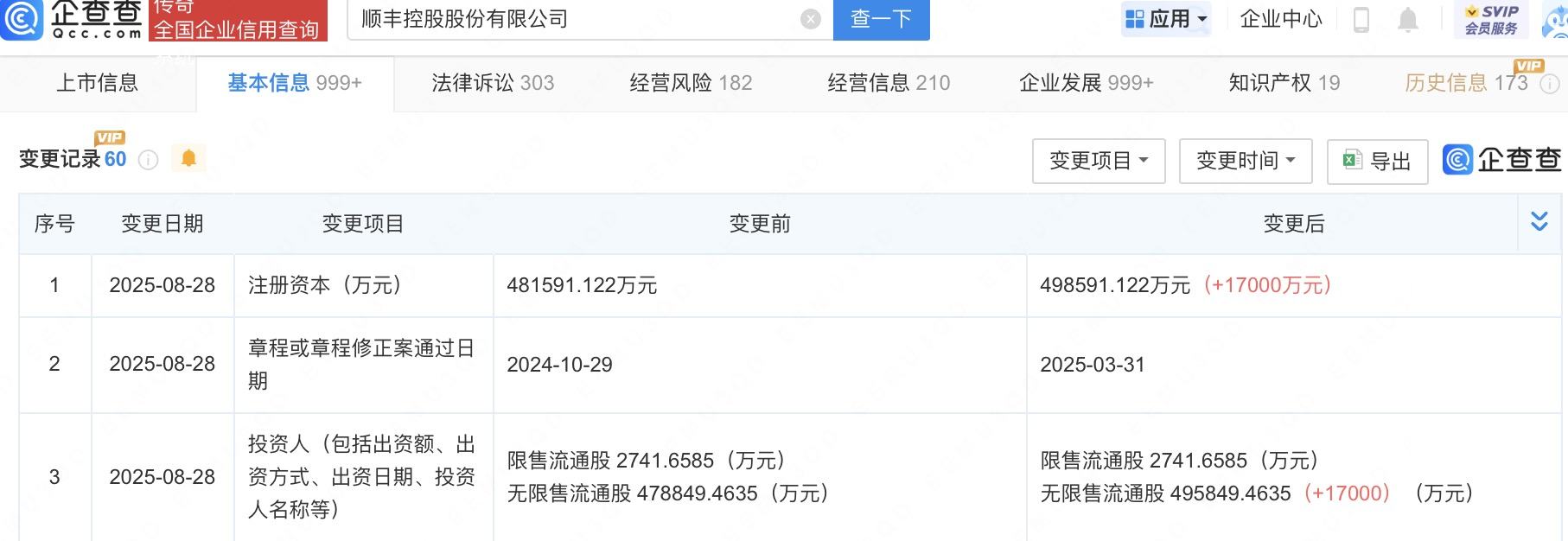 顺丰控股注册资本增至49.86亿