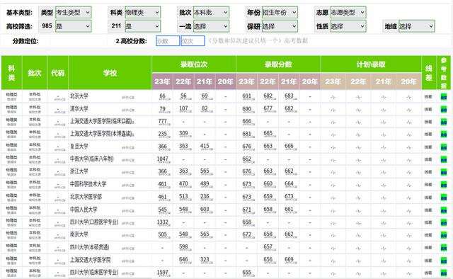 首先,在福建省985工程大学录取分数相对较高。这些学校的录取分数线在650分以上。例如四川大学2023年福建省临床医学专业高考录取分数线为655分,相应排名为1597分。