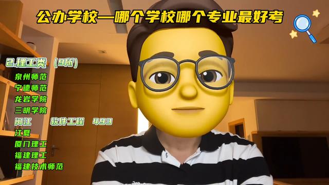 ·在八大类中,公立院校招生最多的是经济管理类,分别有闽江江夏、福建工程、泉州师范、宁德师范、龙岩学院、三明学院、武夷学院,还有福建商学院和福建技术师范大学。江夏是这些院校中分数最高的。财务管理,需要483分。福建商学院酒店管理分数最低,411分,分差72分,理工科有泉州师范、宁德师范、龙岩学院、三明学院、闽江夏、厦门理工、福建理工学院也有福建技术师范学院。分最高的是闽江的软件工程,在之前的视频中提到了493分。