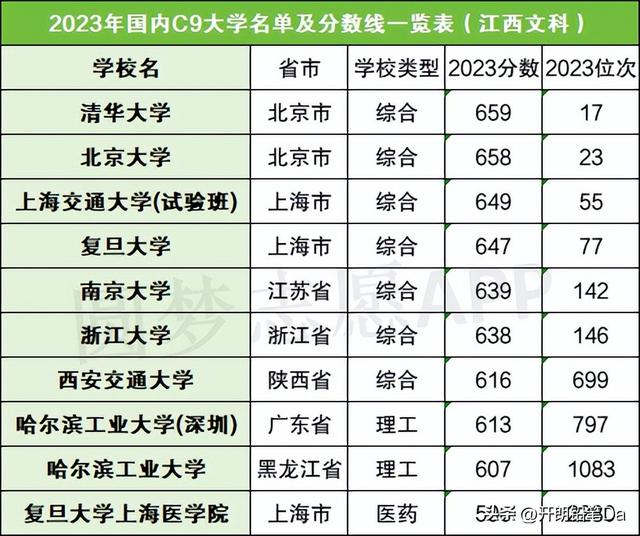 国内C9大学名单及录取分数线(2024年参考)