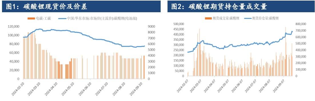 碳酸锂探底回升,总持仓下降 4104 至 425361 手,近期碳酸锂持续震荡运行,虽然宏观面利好政策不断出台,工业品做多氛围浓厚,但碳酸锂并未出现明显跟随,主要还是来自于价格上行将会延缓产能出清的担忧,当下产业端供应收缩、社库持续去库在一定程度上托底碳酸锂价格,但整体供应过剩的趋势并未改变,在国庆长假备货前提下现货市场价格重心也仅小幅上移,日内现货价再度放缓,电碳跌至 7.51 万,工碳跌至 7.09 万,疲弱的现货市场叠加 10 合约即将进入滚动交割期,碳酸锂期货也呈现震荡走势,不过当前宏观情绪强且碳酸锂高位跌势已久,预计节前碳酸锂偏震荡上行。