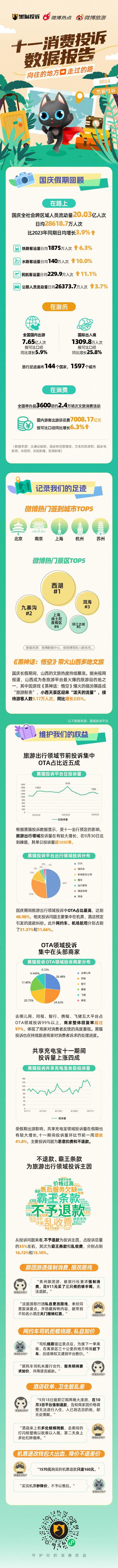黑猫投诉 【下载黑猫投诉客户端】与微博热点、微博旅游携手合作,正式发布了《2024年十一消费投诉数据报告》。本报告深度剖析了旅游行业的大数据、旅游热点以及消费投诉情况,对国庆期间的旅游消费投诉领域进行了全面而客观的回顾与总结,旨在准确反映旅游消费行业的发展态势、热点舆情以及消费者投诉情况。