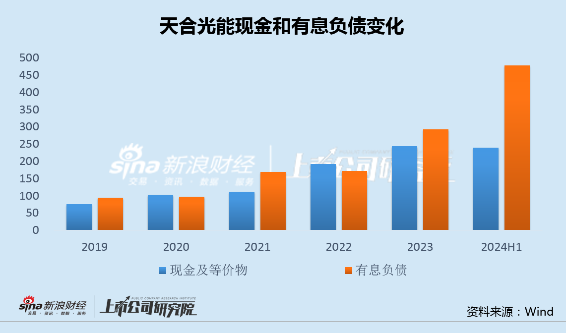 与此同时,今年上半年,天合光能资本开支达到82.1亿元,在行业整体处于明显下行期时,同比继续逆势增加8.3%,其中第二季度支出37亿元,同、环比分别增加11.8%和17.9%,资本开支加速增长之下,公司有息负债在年中继续攀升到了478亿的历史新高。