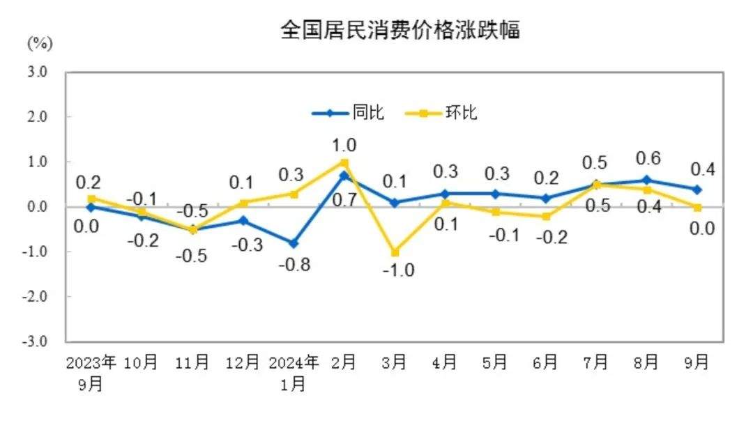 2024年9月份居民消费价格同比上涨0.4%