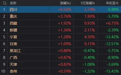 北交所的瑞奇智造、优机股份、中寰股份、中设咨询30cm涨停,主板的成都路桥(002628)、中建环能、重庆港、华西证券(002926)等数十只个股涨幅≥10%。