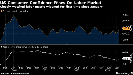 由于对整体经济和劳动力市场的乐观情绪,美国10月消费者信心创下2021年3月以来最大增幅。
