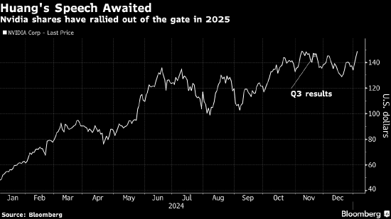 黄仁勋将在备受关注的拉斯维加斯消费电子展(CES)上发表演讲。英伟达通常会利用这个活动来展示使用其芯片的消费设备。然而,投资者今天要关注的是任何有关Blackwell芯片的评论,该芯片被视为英伟达下一主要增长动力。尽管需求强劲,但Blackwell面临供应层面约束,部分原因在于生产上面临的挑战导致其推出放缓。