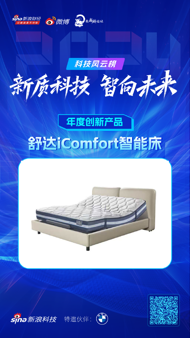 其中,舒达iComfort智能床获得新浪2024科技风云榜——【年度创新产品】。