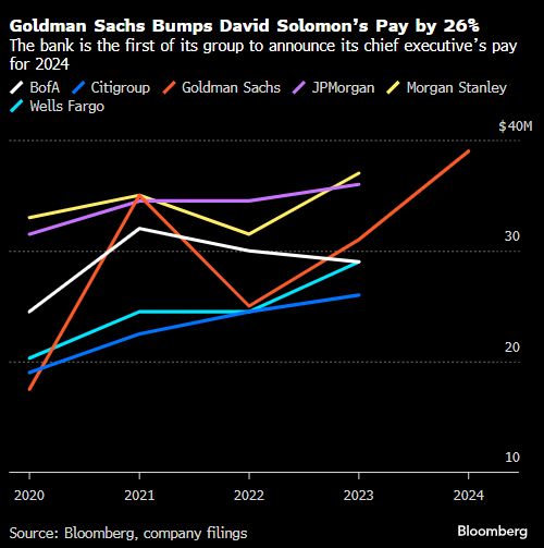 高盛还授予Solomon 2024年一揽子薪酬3900万美元,当年该行利润大增。周五文件中披露的这一数字比Solomon前一年的3100万美元增加了26%。