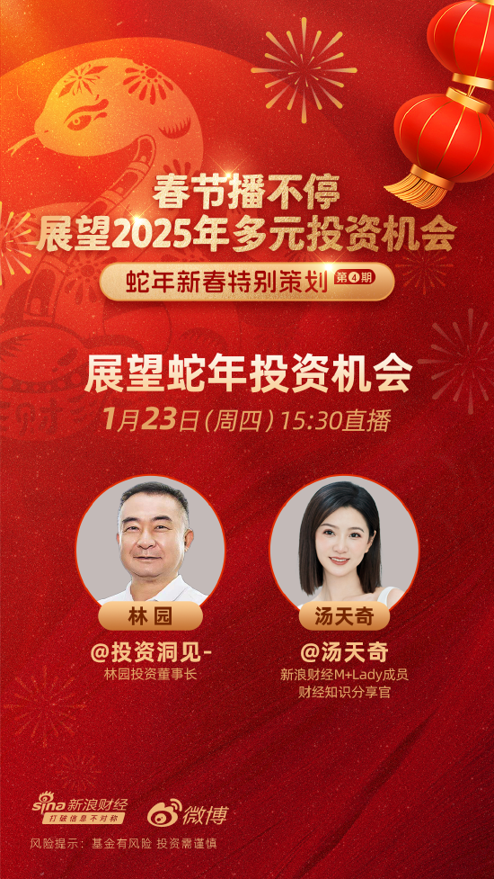 1月23日,中长期资金入市实施方案发布,2025股市将如何表现?新浪财经M+Lady成员 财经知识分享官汤天奇 连线林园投资董事长林园为您展望蛇年投资机会>>直播>>