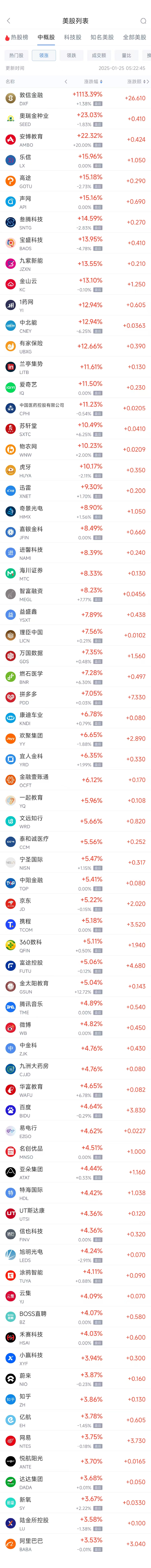 领涨中概股列表: