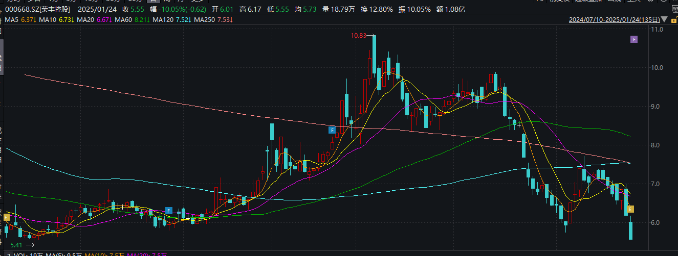 1月24日晚间,荣丰控股披露2024年度业绩预告,因2024年度亏损且营业收入低于3亿元,公司股票交易可能被深圳证券交易所实施退市风险警示。公告发布前,公司股价已连续两个交易日跌停,截至24日收盘报5.55元/股,总市值8.1亿元。