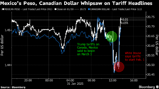 华盛顿的声明抹掉了墨西哥比索和加元早前的涨幅。随着特朗普的关税计划逐渐明朗化,这两个货币一再被推低。