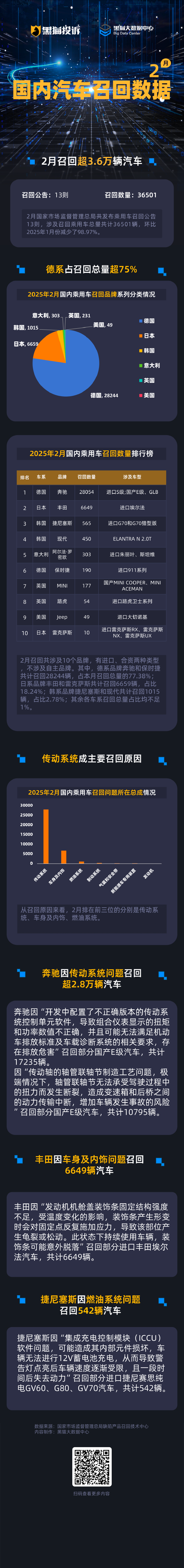 黑猫投诉发布2月国内汽车召回数据:德系为主要召回车系 传动系统成召回主因