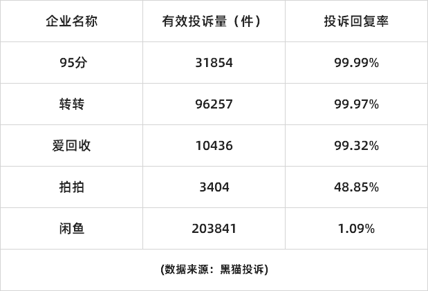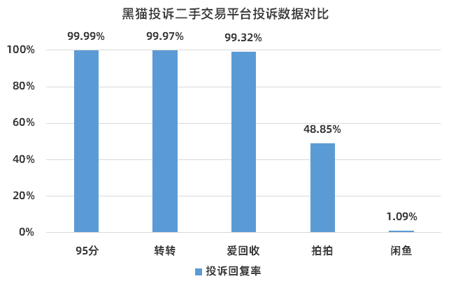 黑猫投诉二手交易平台投诉数据对比:闲鱼回复率仅1%