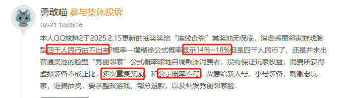 2月黑猫投诉企业红黑榜:北京永航科技有限公司游戏抽奖概率极低