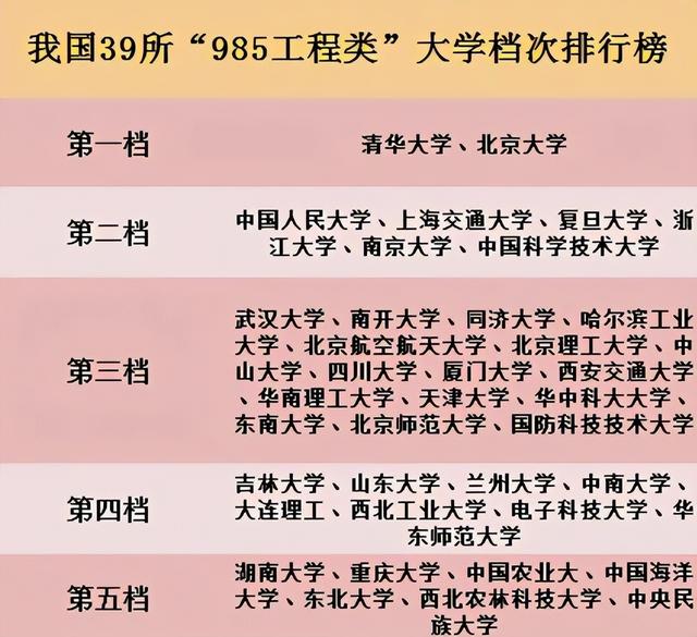 39所985所大学分为5档,录取分数公布,第5档令人惊讶