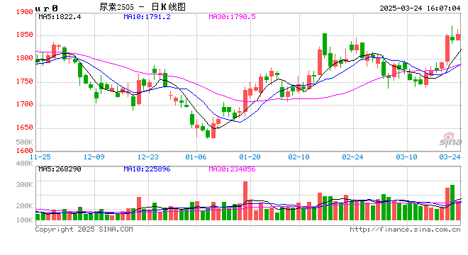 上周尿素止跌反弹,在出口消息、部分装置短停、工业需求旺盛、生产企业大幅去库等多重因素影响下,主力合约周四增仓大涨,周五突破2月以来高点,但尾盘减仓跳水,周线收涨72元/吨或4.07%。在期货上涨支撑下,现货市场交投好转,成交重心上移,生产企业新单成交量有所提升,部分企业限收、停收。价格方面,3月21日,河南小颗粒尿素市场主流价上涨至1870元/吨,环比上涨60元/吨,山东小颗粒尿素市场主流价1890元/吨,环比上涨90元/吨,江苏小颗粒尿素市场主流价1910元/吨,环比上涨90元/吨,关中小颗粒尿素出厂价1800元/吨,环比上涨40元/吨,安徽小颗粒尿素主流价为1890元/吨,环比上涨90元/吨,河北小颗粒尿素主流价为1890元/吨,环比上涨50元/吨。