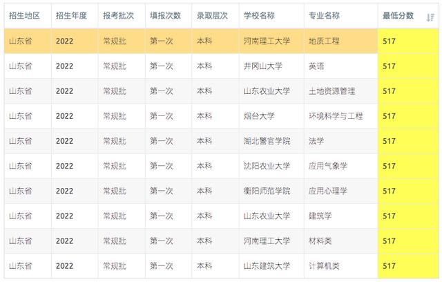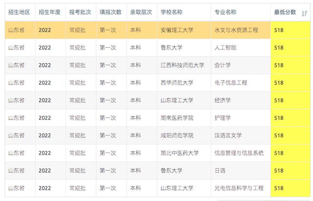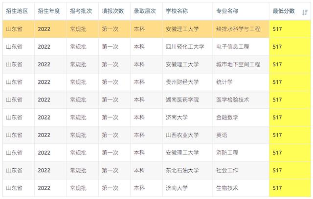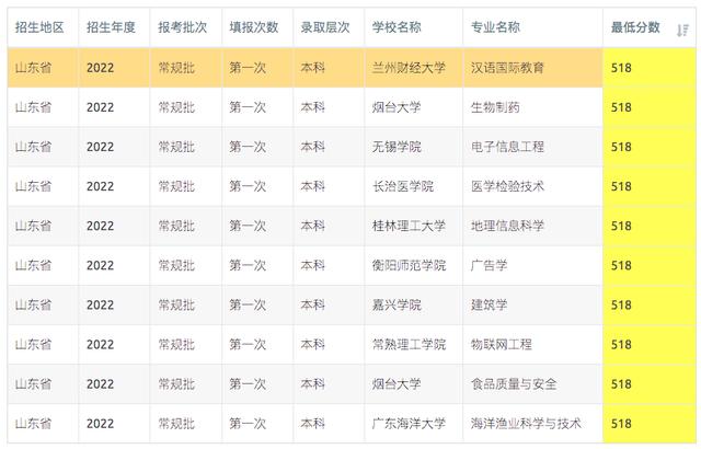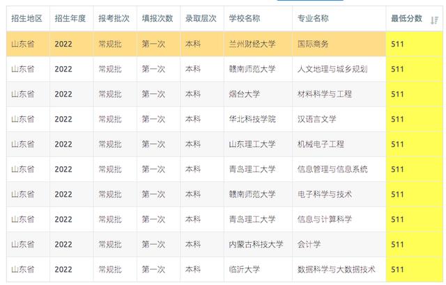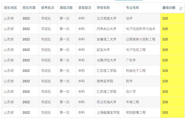 【高考志愿填报】2023年山东高考500-520分可报考的高校