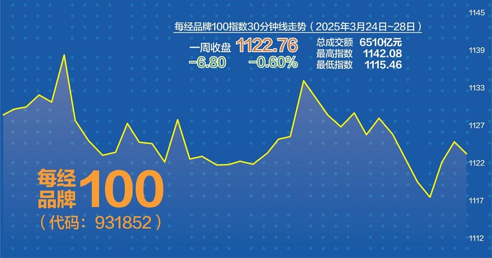 2024年年报披露密集期前夕,A股观望氛围浓厚,沪深两市成交金额环比明显萎缩,每经品牌100指数受此影响,上周迎来窄幅震荡,微跌0.60%。