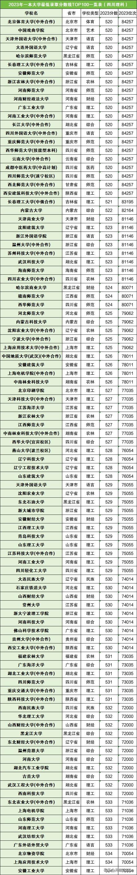 以2023年四川省例如,在科学方面,一所大学的最高分是698分,对应的是清华和北大;最低分是520分,对应的院校有21所,包括河南师大、海南师大。