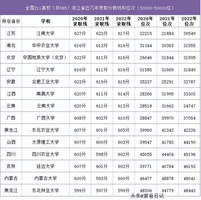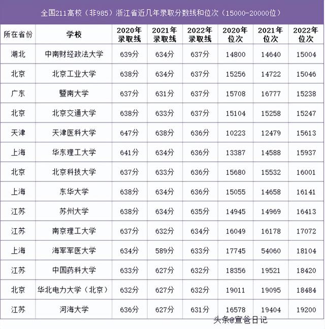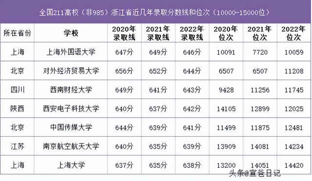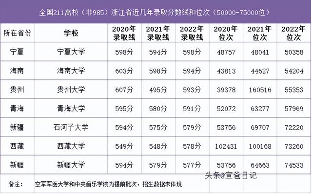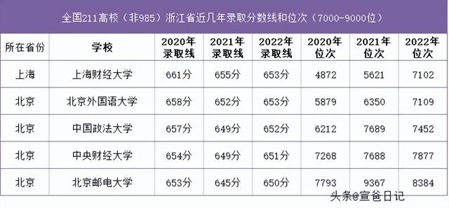 浙江省近年来全国211所大学(非985所大学)的录取分数线