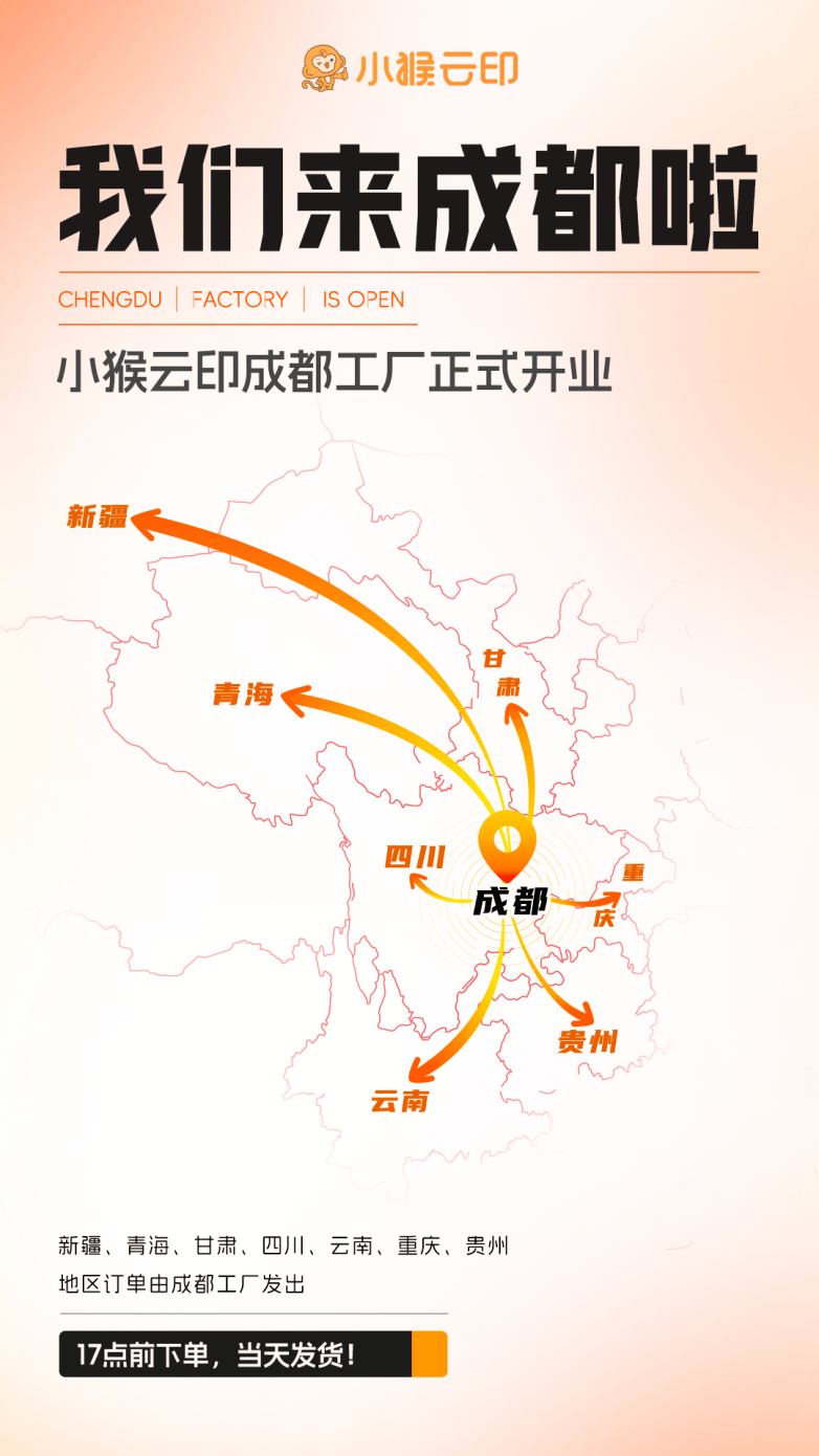 近日,小猴云印传来重磅消息:其成都打印工厂正式投产运营。至此,小猴云印已形成广州、郑州、杭州、成都四大打印工厂的全国性布局。这一战略性举措不仅标志着小猴云印在产能和服务覆盖范围上的重大飞跃,更意味着该品牌在实现“高性价比”与“极致交付”的双重突破方面,迈出了坚实的一步。